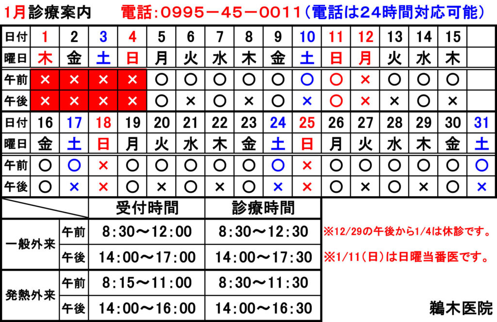 令和8年1月〜令和8年3月の診療案内についてお知らせいたします。
