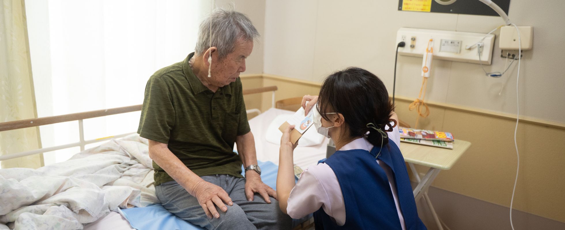 - 職種による壁がなく、お互いに助け合いながら仕事に取り組んでいます。また、院長が毎日数回、病棟と介護施設に顔を出してくださり、患者様・利用者様の様子を見ていただけるので、安心感があります。病状の変化があった時などに相談しやすい雰囲気を作ってくださっています。