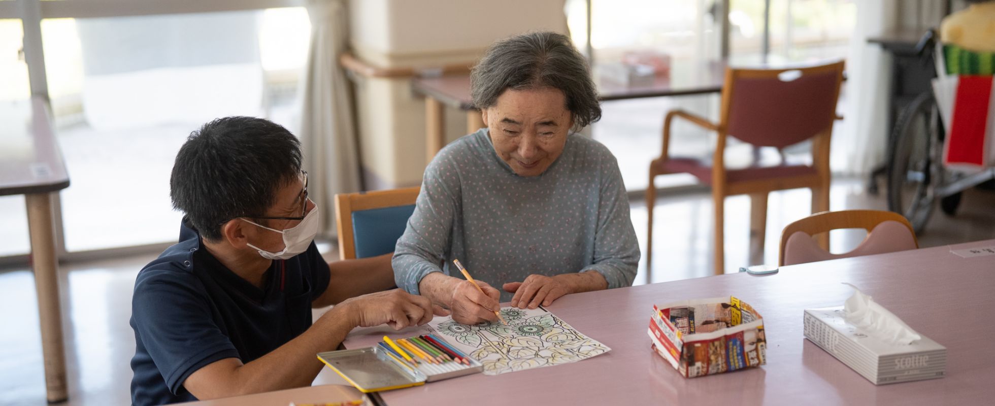 - 春成会では、介護士・看護師・理学療法士・作業療法士・言語聴覚士・ソーシャルワーカー・ケアマネジャー・医師など、いろいろな職種が働いています。日々、1人の利用者様について専門職の視点で意見を出し合い、サポート方法について考えることはとてもやりがいがあり、刺激になっています。皆でお互いを磨き合える良い環境だと思います。