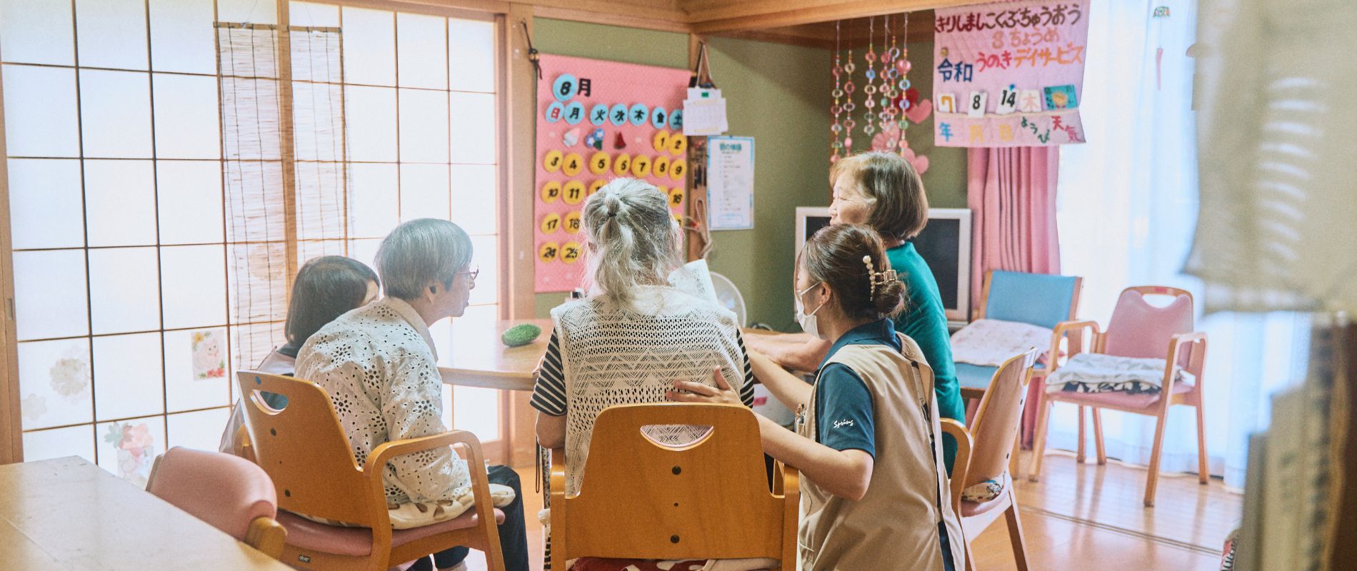 うのきデイサービスは、利用者の思いを第一に安心して自宅で日常生活を送ることができるよう、少人数で個別のサービスを提供する認知症の方を対象にした通所介護です。